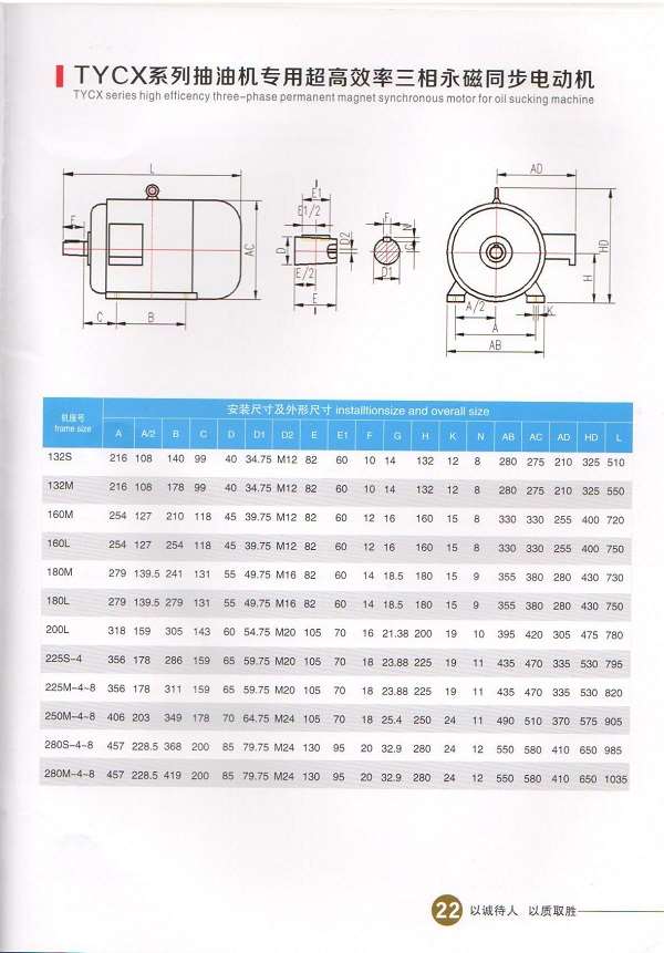 TYCX抽油機用永磁同步電機為全封閉、自扇冷結構。在相對于同規(guī)格異步電動機均具有更高的效率、經濟運行范圍寬、具有顯著的節(jié)能效果,電機溫升低、在額定負載下,電機的溫升在30-50k。