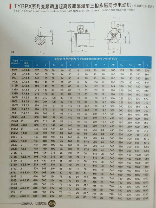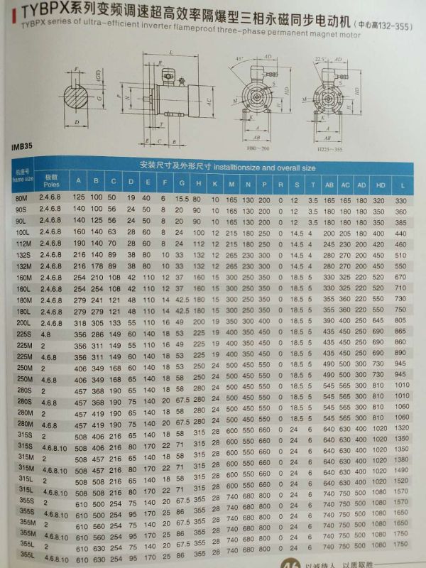TYBPX隔爆型永磁同步電機(jī)型號的含義為:T代表同步;Y代表永磁;B代表隔爆:Px代表高效變頻。組合在一起就是變頻調(diào)速高效率永磁同步電機(jī)。